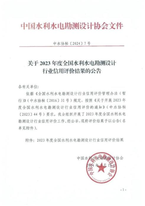 4項AAA,3項AAA+!我院在2023年度水利建設市場主體及全國水利水電勘測設計行業(yè)信用評價中再創(chuàng)佳績