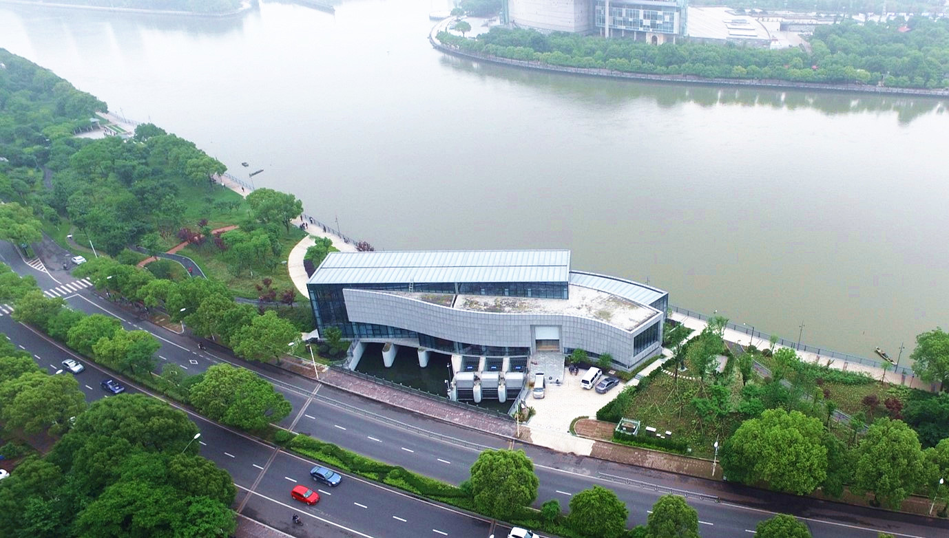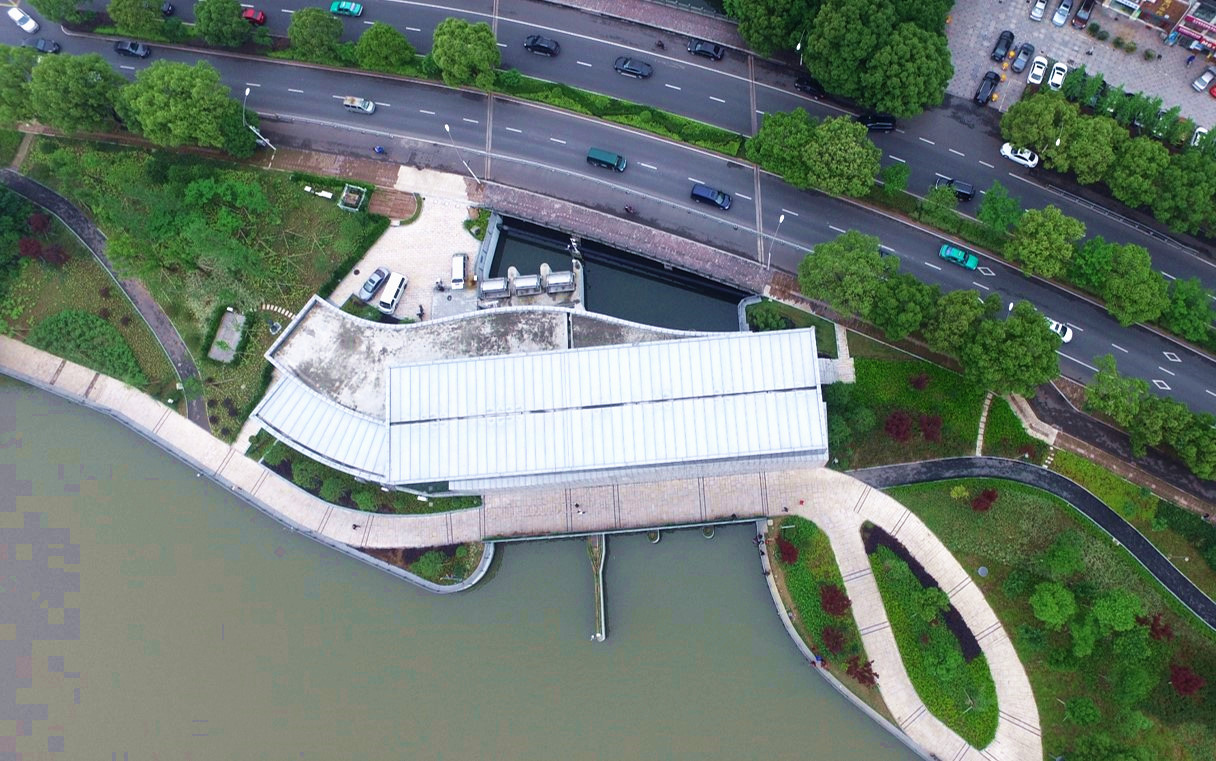 保豐碶閘站位于現(xiàn)有濱江公園范圍內(nèi),通過合理的建筑布置與現(xiàn)代的建筑設(shè)計,將水利廠房與周邊的景觀進行了有機結(jié)合,同時考慮到本工程的悠久文化底蘊,于泵站內(nèi)設(shè)置了文化長廊,建成以后成為了寧波水利的一個重要對外窗口。