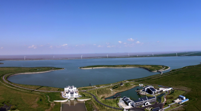 工程占地1萬畝,總庫容4508萬方,調(diào)蓄庫容3500萬方,屬中型水庫。其工程等別為Ⅲ等,主要建筑物級別為3級,洪水標(biāo)準(zhǔn)按50年一遇設(shè)計,300年一遇校核。工程主要建設(shè)內(nèi)容包括水庫堤壩長10929米,泵站1座(裝機(jī)容量800kw),放水閘1座,節(jié)制閘3座,排咸工程,同時建設(shè)湖心島、配套引水河道、橋梁、管理用房和綠化工程等。