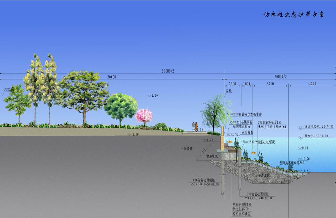 工程位于海曙區(qū)西側(cè),南起鄞江,北至姚江,為實(shí)現(xiàn)對海曙西側(cè)山區(qū)洪水的攔截,共整治河道長24km,建設(shè)閘站40座,閘門總凈寬554m,泵站22m3/s,改建新建橋梁42座。其中有3.5km與G228國道并線,為協(xié)調(diào)國道與河道之間用地布局,通過優(yōu)化河道斷面型式和堤線線位,實(shí)現(xiàn)了對土地的集約利用,打造一條海曙西部交通和河道的靚麗風(fēng)景線。