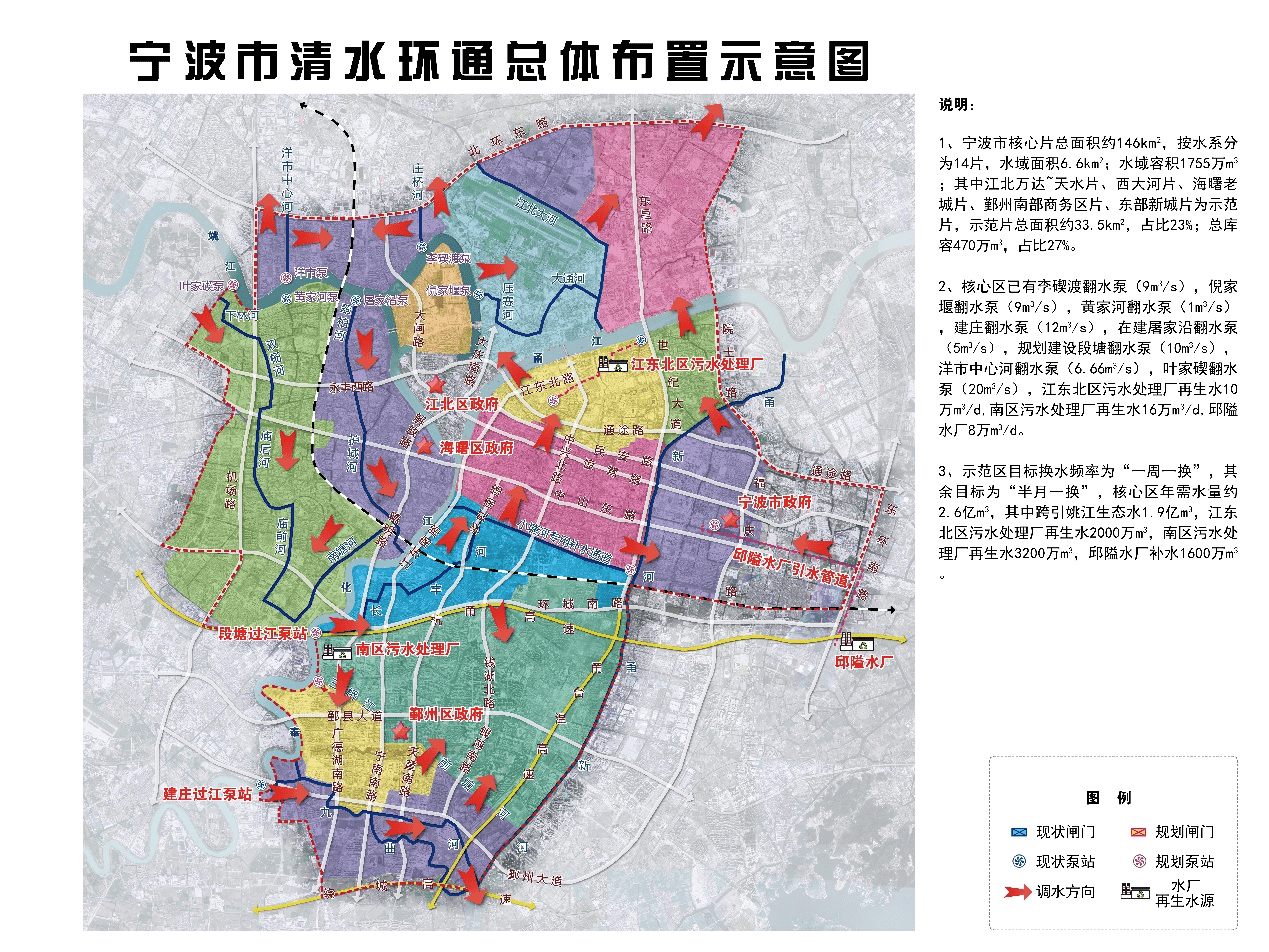 本工程任務(wù)為通過(guò)生態(tài)引調(diào)水,讓平原河網(wǎng)的水體活起來(lái)、動(dòng)起來(lái),改善河道水環(huán)境。工程位于寧波市區(qū),主要包括引排水泵站及凈化工程、中環(huán)通分區(qū)調(diào)控工程(結(jié)合排澇節(jié)制閘)、小環(huán)通及微循環(huán)分區(qū)調(diào)控工程(調(diào)水節(jié)制閘)、水系連通工程及其他工程等五部分。