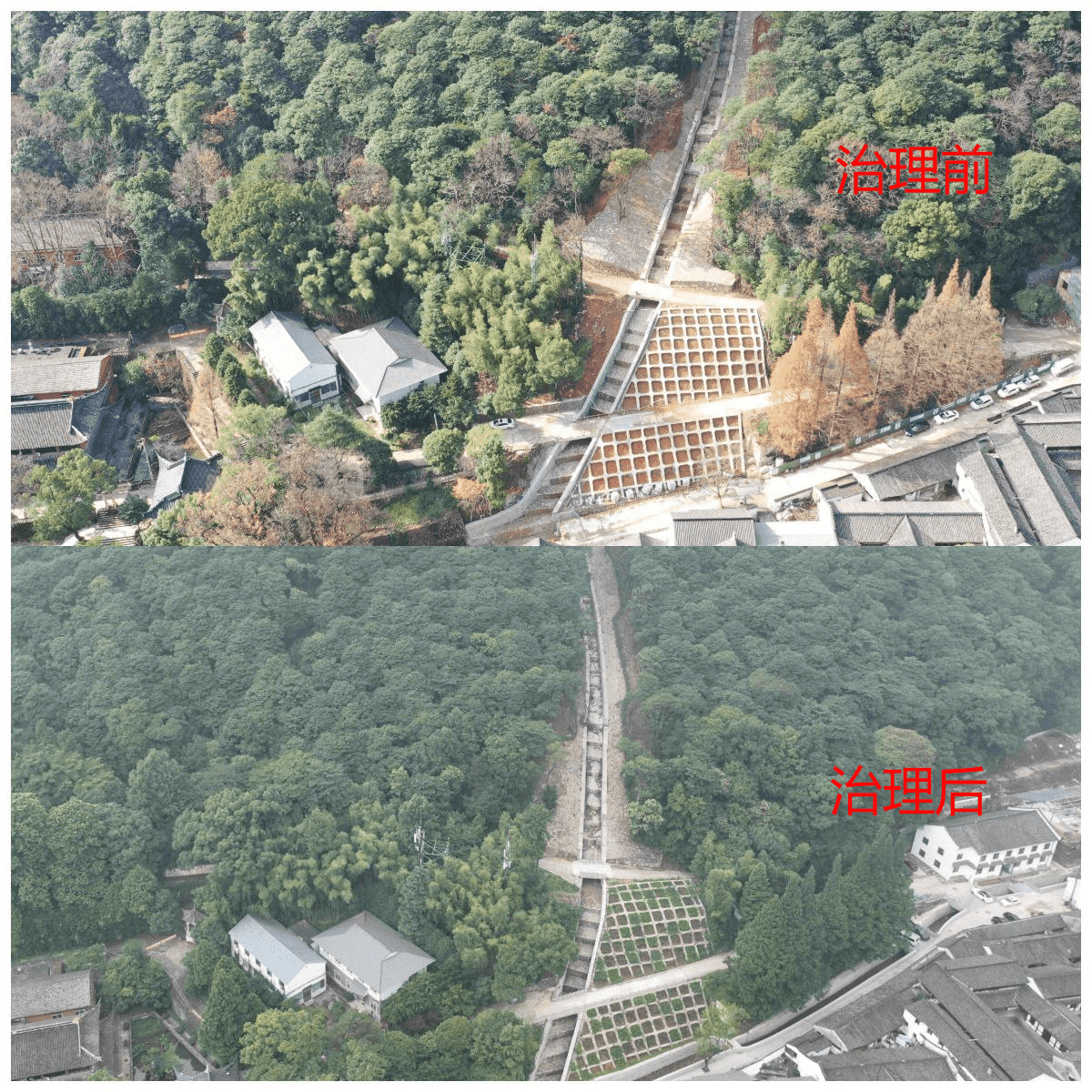 經(jīng)綜合治理后,千年古寺煥發(fā)新機,且在臺風“煙花”過境寧波時有效發(fā)揮水土保持功能,避免了泥石流等地質災害的發(fā)生,不僅維護了當?shù)厣鷳B(tài)環(huán)境穩(wěn)定,更保護了當?shù)厝罕姷纳敭a(chǎn)安全。