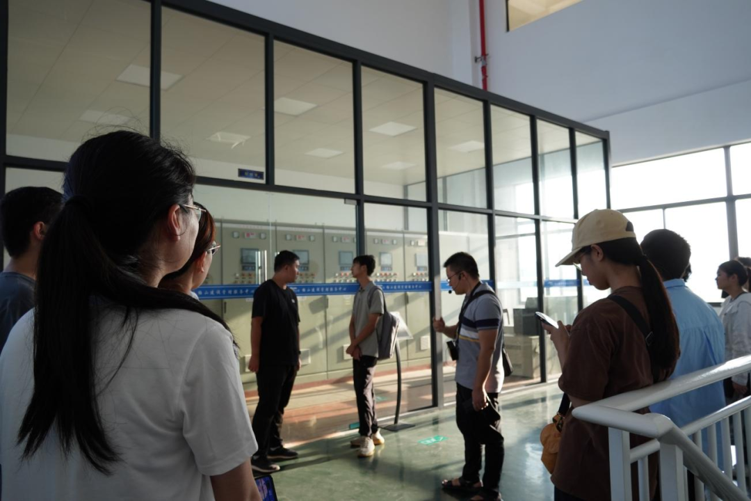 最后,研學(xué)隊(duì)伍來到北堤樞紐參觀。該工程榮獲中國建筑行業(yè)工程質(zhì)量的最高榮譽(yù)獎(jiǎng)——2020-2021年度第一批中國建設(shè)工程魯班獎(jiǎng)。胡經(jīng)理帶領(lǐng)研學(xué)隊(duì)伍依次進(jìn)入啟閉機(jī)房、觀景臺(tái)、控制室等處,現(xiàn)場講解工程設(shè)計(jì)思路、建造工藝和管理要點(diǎn)。