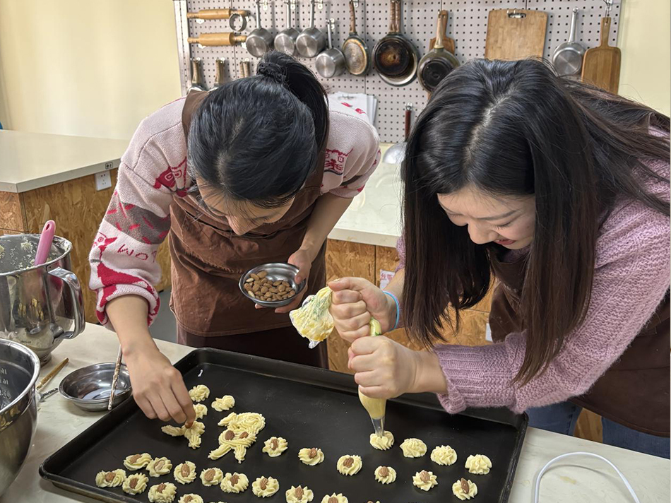 活動(dòng)當(dāng)天,女職工們按時(shí)到達(dá)活動(dòng)教室,發(fā)揮巧思,施展妙手,或是“掐絲、剪絲、上砂、上膠”,或是“測(cè)量、造型、印刻、拋光”,或是“和面、打發(fā)、烘烤、裝點(diǎn)”,解鎖了一系列全新的體驗(yàn),收獲了節(jié)日的快樂(lè)和美好。