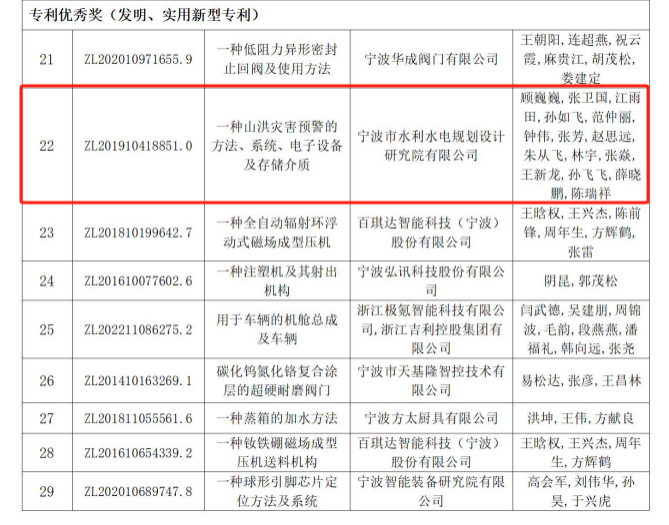 近日,寧波市市場監(jiān)督管理局公布了第三屆寧波市專利創(chuàng)新大賽獲獎項(xiàng)目名單,我院提交參賽的發(fā)明專利“一種山洪災(zāi)害預(yù)警的方法、系統(tǒng)、電子設(shè)備及存儲介質(zhì)”榜上有名,獲得本次大賽的“專利優(yōu)秀獎(發(fā)明、實(shí)用新型專利)”。