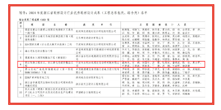喜報 | 我院項目再獲2024年浙江省勘察設(shè)計行業(yè)優(yōu)秀勘察設(shè)計成果獎