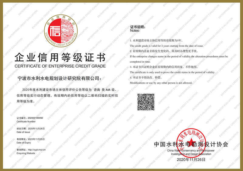 水利水電咨詢AAA級(jí)信用企業(yè)
