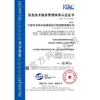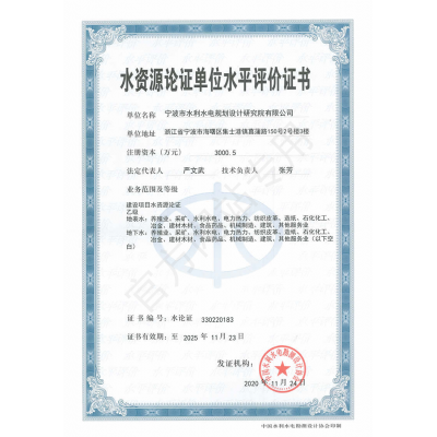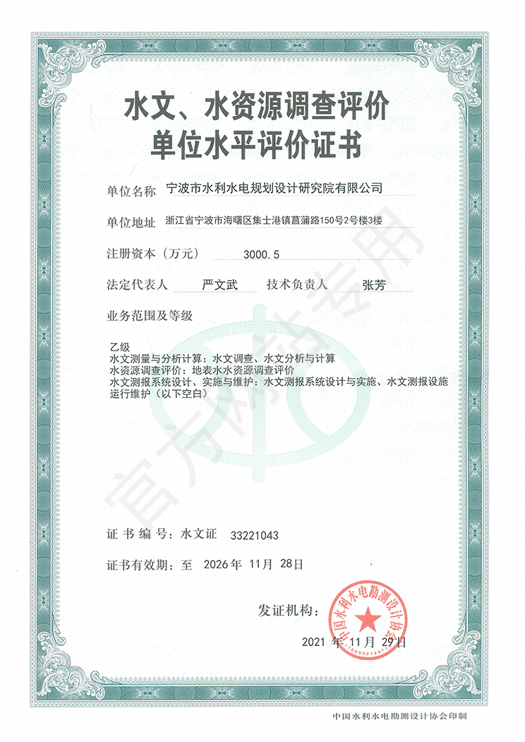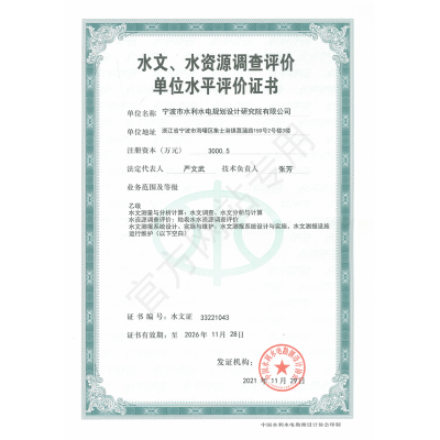 寧波院具有水利水電工程設計、工程勘察、工程咨詢、水土保持、水資源論證等多項資質(zhì)。承擔中小河流域規(guī)劃、水庫、河道整治、灘涂圍墾等工程的勘察、設計、咨詢、總承包業(yè)務,以及各領域建設項目的防洪評價、水資源論證、水土保持方案編制、水土保持監(jiān)測、計算機行業(yè)CMMI 3級認證、知識產(chǎn)權(quán)管理體系認證等。